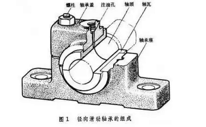 承受径向载荷的滑动轴承。轴承支撑的轴部分称为轴颈,与轴颈匹配的部分称为轴瓦。由完整圆柱体制成的衬套称为衬套衬套的一部分,而上部称为轴承盖。,下部称为轴承座。盖和座使用双头螺栓连结,两者的接合面通过插销或销定位,并且可以置放不同厚度的垫片以调节轴承空隙。