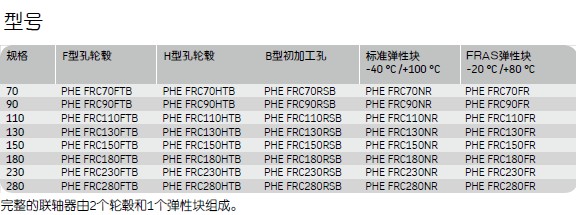 联轴器的表面经过磷化处理以改善牛奶的腐蚀性,并可以提供耐火和抗静电(F.R.A.S)弹性块。FRC联轴器可以提供初步的加工孔。锥形衬套(表面或轮毂)的安装形式容易安装。