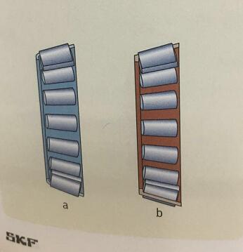 SKF单列圆锥滚子轴承采用以下维持架之一,请参阅下图:
