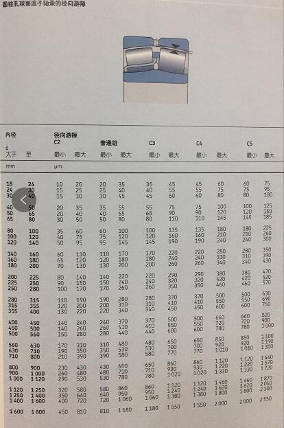 径向游隙范围合乎ISO5753:1991标准,并且适用于未安装且从未测量负载的轴承。