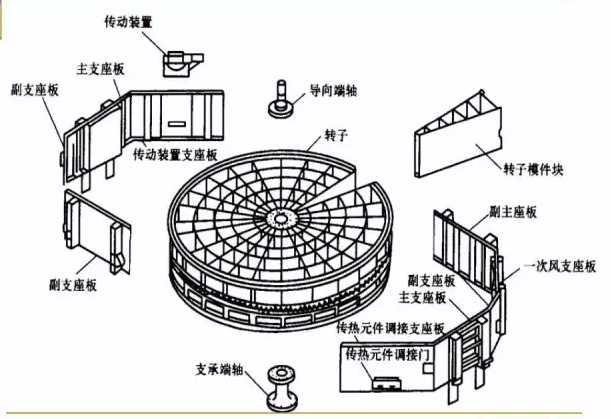 1.外壳一般而言由多边形圆柱体,上下端板以及上下扇形板构成。上下端板上有烟道开口,并与烟道和风道相连。