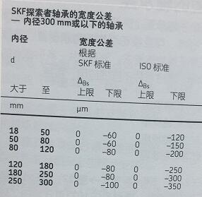 SKF调心滚子轴承是根据一般公差标准制造的。SKF探索者球面滚子轴承,KMP300的内径为300mm以下,包括圆柱或圆锥孔轴承,是根据比一般而言等级更高的公差标准制造的,如: